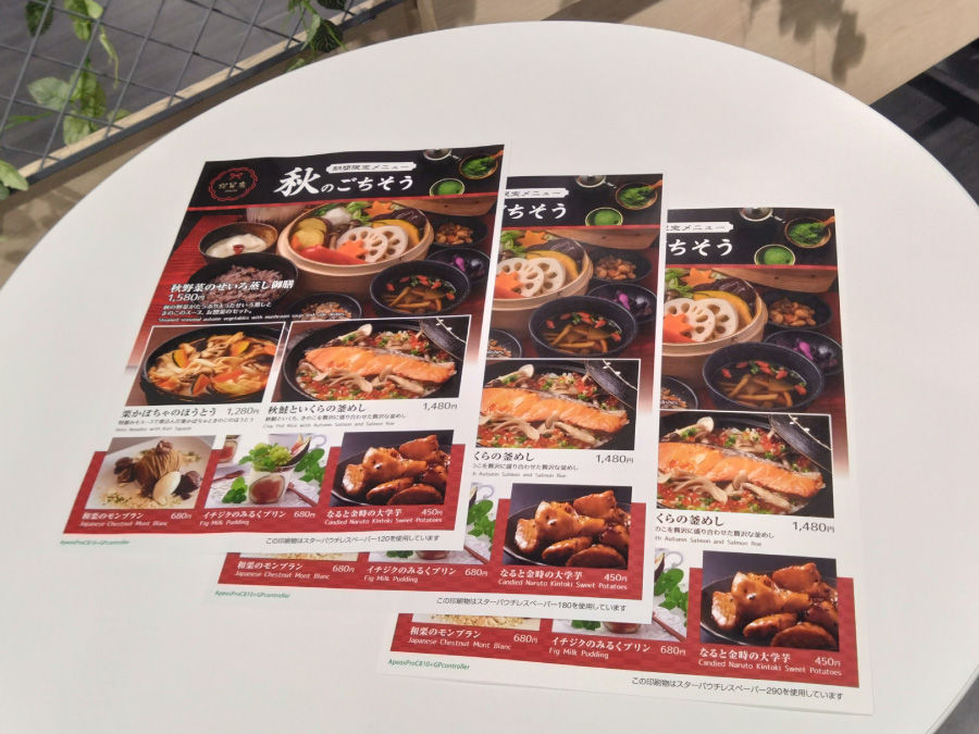 自然な色味がちょうどよく、企業の会社説明や新商品の情報を載せて配るのに使い勝手がよさそう。