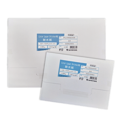 以前は別の耐水紙を使っていましたが、コストを見直した結果、スターパウチレスペーパーを導入しました。 B4サイズに十字のマイクロミシン加工を施し、プライスカードとして活用しています。
